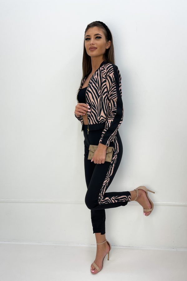 Komplet Charlotte – komplet dresowy Charlotte z wysokiej jakości bawełny. Krótka rozpinana bluza typu bomberka. Bluza z oryginalnym printem. Spodnie dresowe z wysokim stanem.Idealna propozycja wybór na weekendowy wypoczynek.