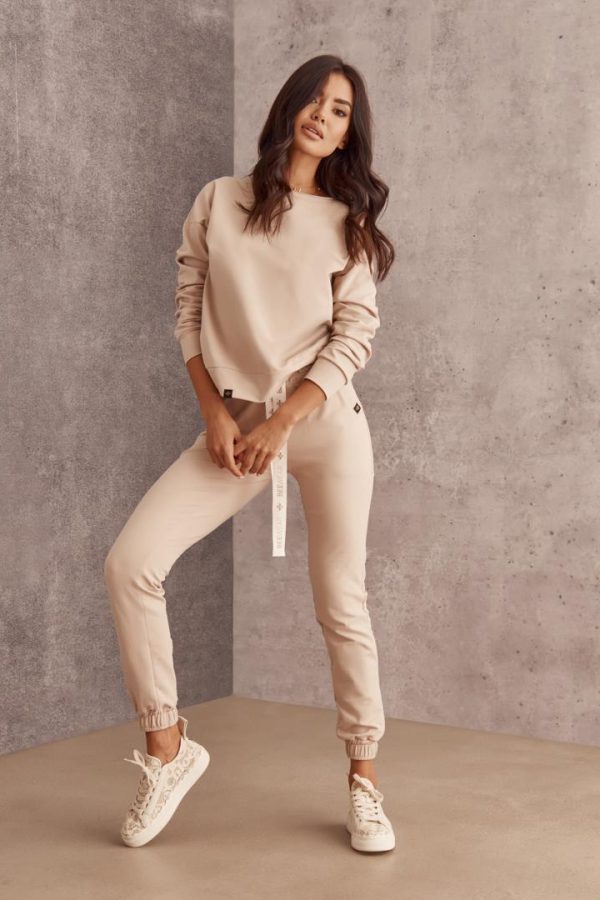 Komplet dresowy wykonany z dzianiny bawełnianej. Bluza z kapturem, rozpinana wykończona lampasem nada modny charakter Twojej stylizacji! Spodnie z gumką w pasie z lampasami po bokach. Idealna propozycja na weekendowy wypad.